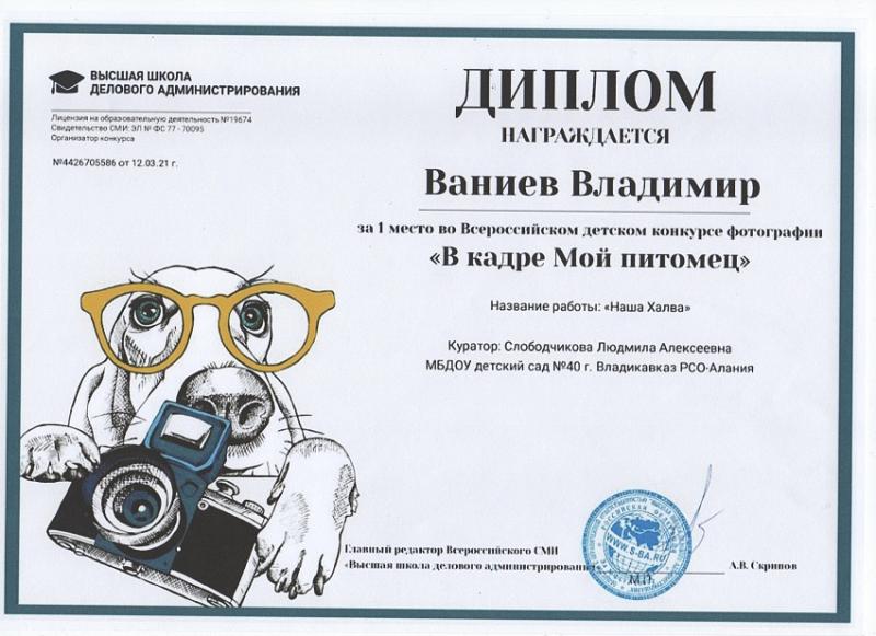 Диплом Ваниев Владимир. Конкурс "Я познаю мир"