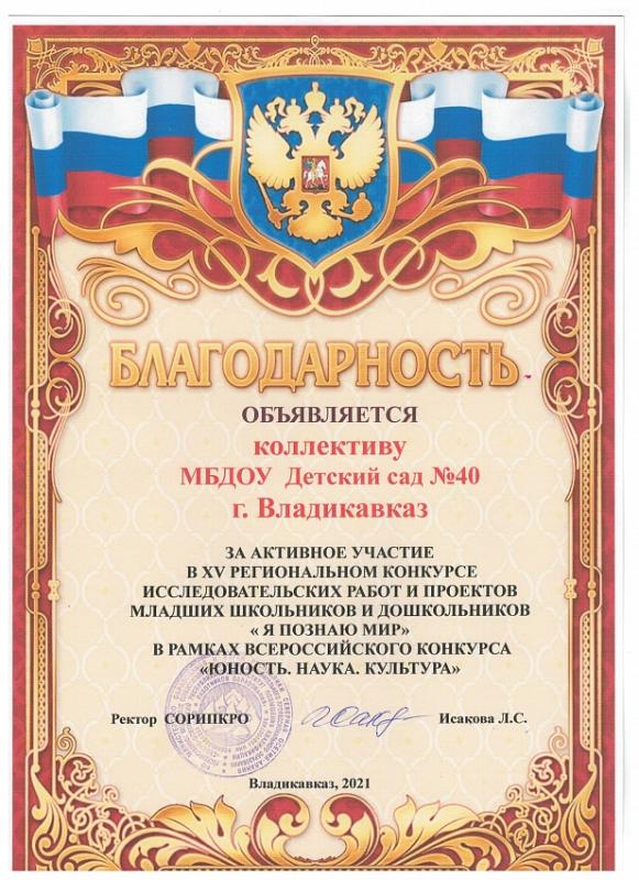 Благодарность Алаговой Эльме Николаевне. Конкурс исследовательских работ